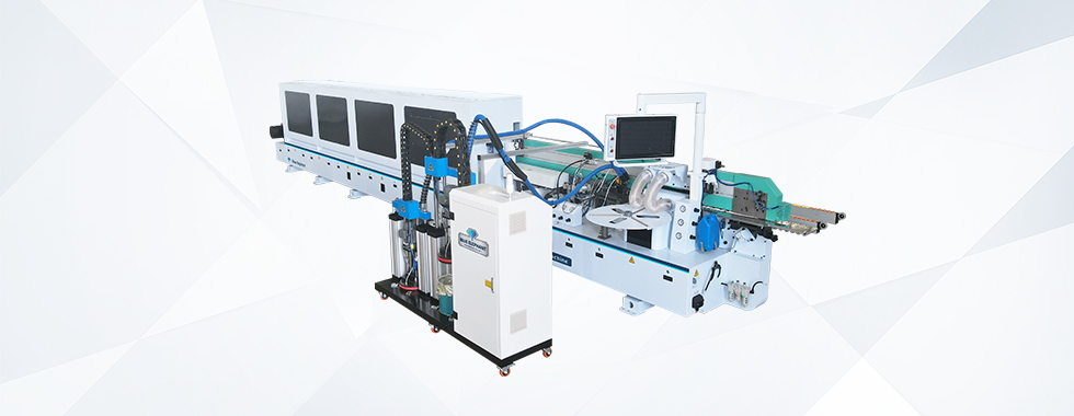 主要功能:分離→預銑→PUR膠鍋→皮帶壓輪→粗修→精修→刮邊1→刮邊2→齊頭→仿形跟蹤→平刮→清洗→拋光1→拋光2→拋光3