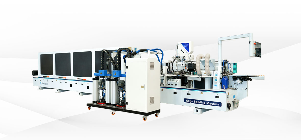 功能:前分離-預銑-上膠鍋+快速溶膠六輪壓貼1-下膠鍋+六輪壓貼2-快速齊頭-氣動精修1-氣動精修2-四頭跟蹤倒角-氣動刮邊1-氣動刮邊2-斷絲+平刮-后清洗-拋光1-拋光2
